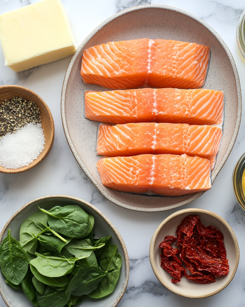 Each ingredient has a purpose. The salmon provides richness and protein, the cream and Parmesan create a luxurious sauce, and the sun-dried tomatoes and spinach add contrast in both flavor and texture. Fresh herbs and lemon juice brighten the dish at the end, ensuring it never feels heavy.