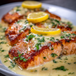 A luxurious yet approachable salmon dish featuring golden-seared fillets topped with a silky lemon cream sauce that’s bright, rich, and perfectly balanced.