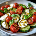 Easy Cucumber Caprese Salad is a crisp and refreshing take on the traditional Italian caprese. By adding cool cucumber to the classic trio of tomatoes, mozzarella, and basil, this version feels lighter while still delivering the creamy and juicy contrast that makes caprese so beloved. Each forkful offers a balance of textures, from tender cheese to firm cucumber and bursting tomatoes.