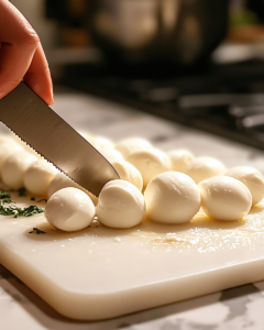 Fresh mozzarella gives the salad its soft, milky character. Small mozzarella balls, often labeled bocconcini or ciliegine, are easy to use. If you have a large ball of fresh mozzarella, simply cut it into bite-sized chunks. Drain it thoroughly to avoid watering down the salad.