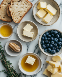 Bread forms the structure of Gourmet Blueberry Grilled Cheese. Choose sturdy slices such as sourdough, country white, or brioche. Sourdough provides gentle tang and structure, while brioche creates a slightly richer, softer bite. The bread should be thick enough to hold melted cheese and warm fruit without becoming soggy.