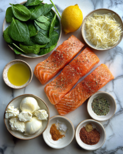 With just a handful of ingredients—4 salmon fillets (6 ounces / 170 g each), 3 cups (90 g) fresh spinach, 4 ounces (113 g) cream cheese, 1/3 cup (35 g) Parmesan, and simple seasonings—you can produce a dish that rivals upscale dining experiences.