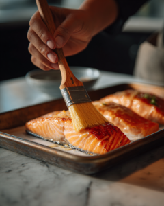When combined with fresh lemon juice and garlic, the glaze becomes layered and dynamic. As it bakes over the salmon, the sugars in the maple syrup caramelize, forming a glossy coating that locks in moisture.