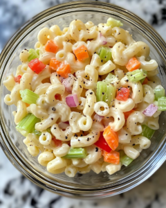 Inspired by traditional family BBQs and neighborhood potlucks, this version strikes the perfect balance of creamy dressing, tender pasta, and crisp vegetables. It’s easy to prepare, ideal for making ahead, and guaranteed to disappear fast. If you’re looking for a dependable, crowd-pleasing summer side, this is it.