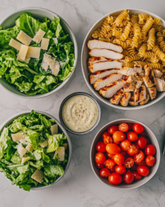 These Ultimate Meal Prep Grilled Chicken Caesar Pasta Salad Jars High Protein Power are the perfect blend of practicality and flavor. They bring together everything you love about classic Caesar salad—creamy dressing, crisp romaine, savory Parmesan—and elevate it with hearty pasta and juicy grilled chicken.